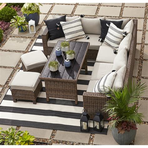 One way to enhance the look and feel of your patio wicker sectional is to add an outdoor rug. Look for a rug that is weather-resistant and designed for outdoor use. Consider the size and shape of the rug, as well as the color and pattern. A rug can help define your seating area and add warmth and texture to your outdoor space.